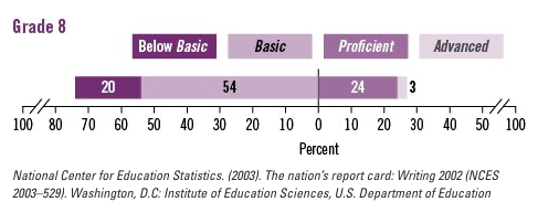 - By Grade 8, only 27% of children are above Proficient; 20% perform Below Basic levels