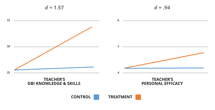 Teachers who received the PD support ad implemented DBI for 20 weeks improved their DBI knowledge and skills and personal efficacy for teaching and writing.